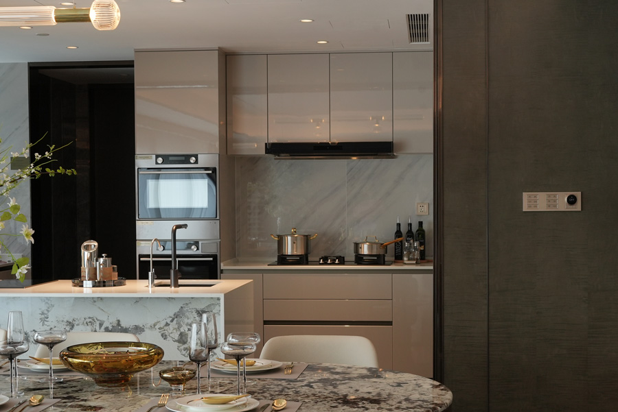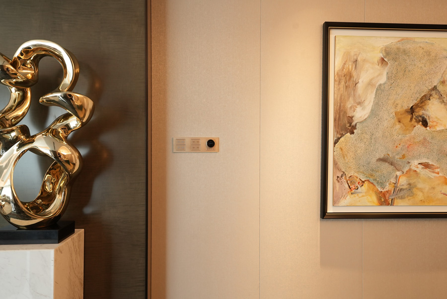 為匹配住宅的高奢屬性和不同的家裝風(fēng)格,GVS汲取中西美學(xué)的前沿設(shè)計(jì),為外灘壹號(hào)院專屬定制了智能面板,無論是顏色、鐳雕及親膚感金屬的選材都完美共生于墻面之上,呼應(yīng)了整個(gè)住宅的尊貴雅致基調(diào)。